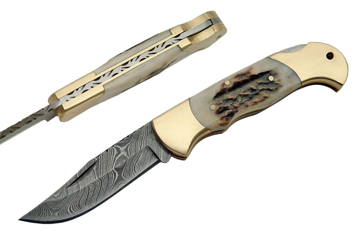Folding Knife Damascus Steel Blade Stag Handle 1162SG